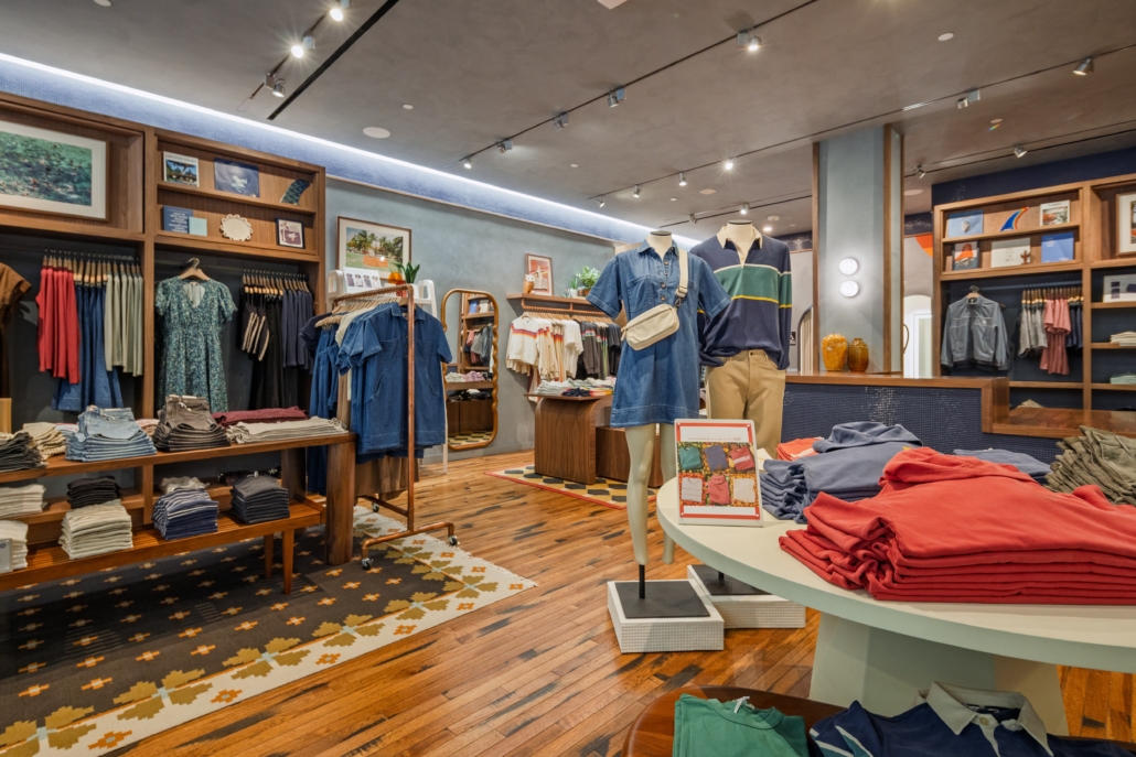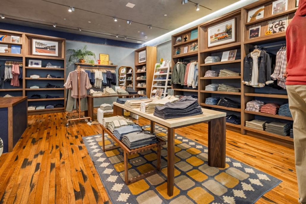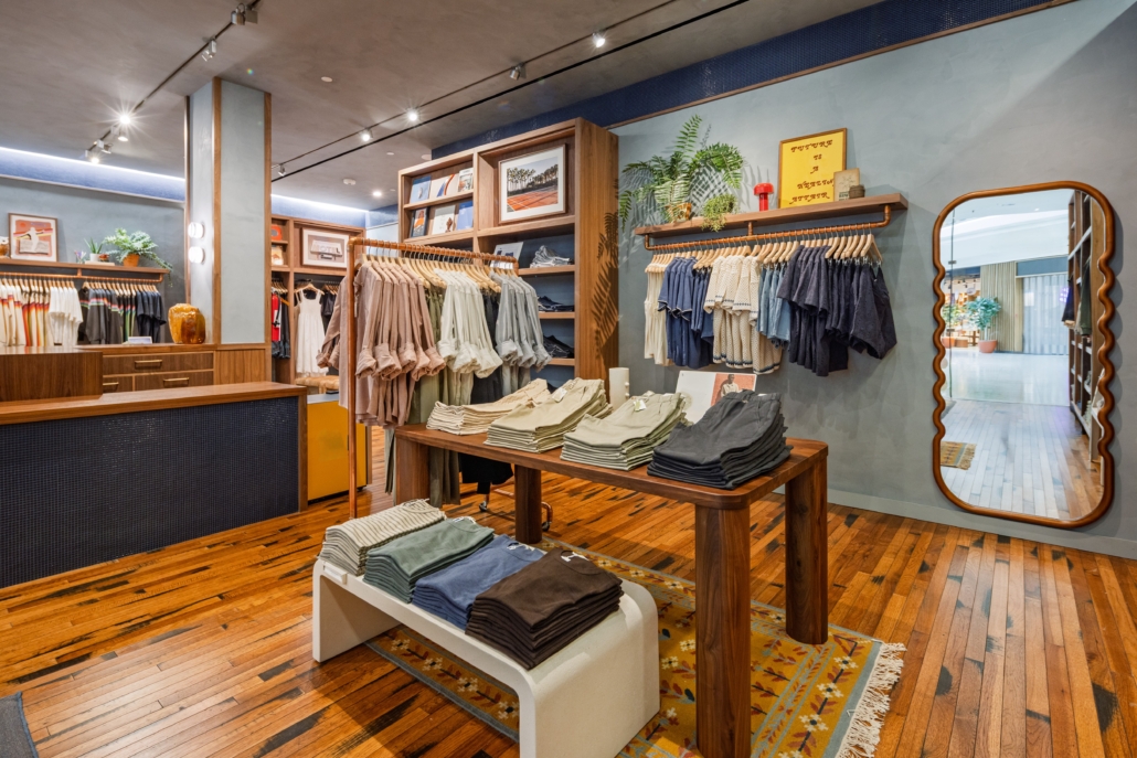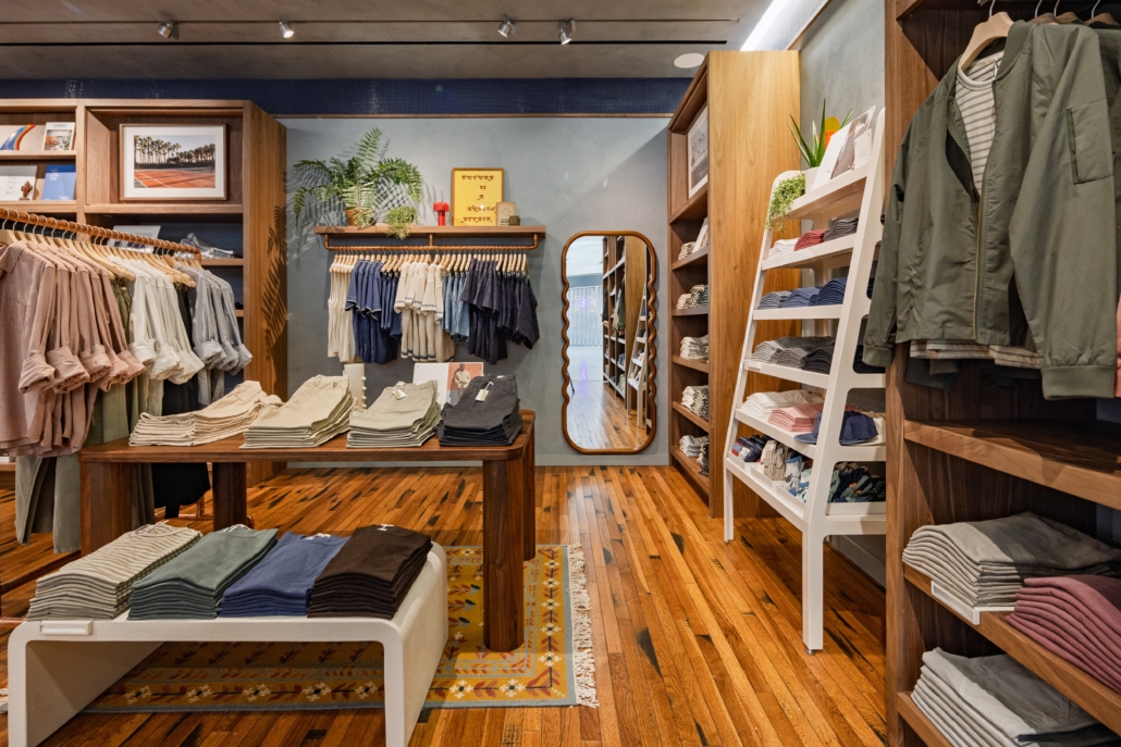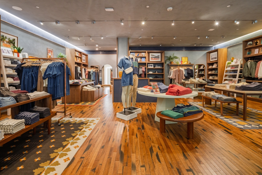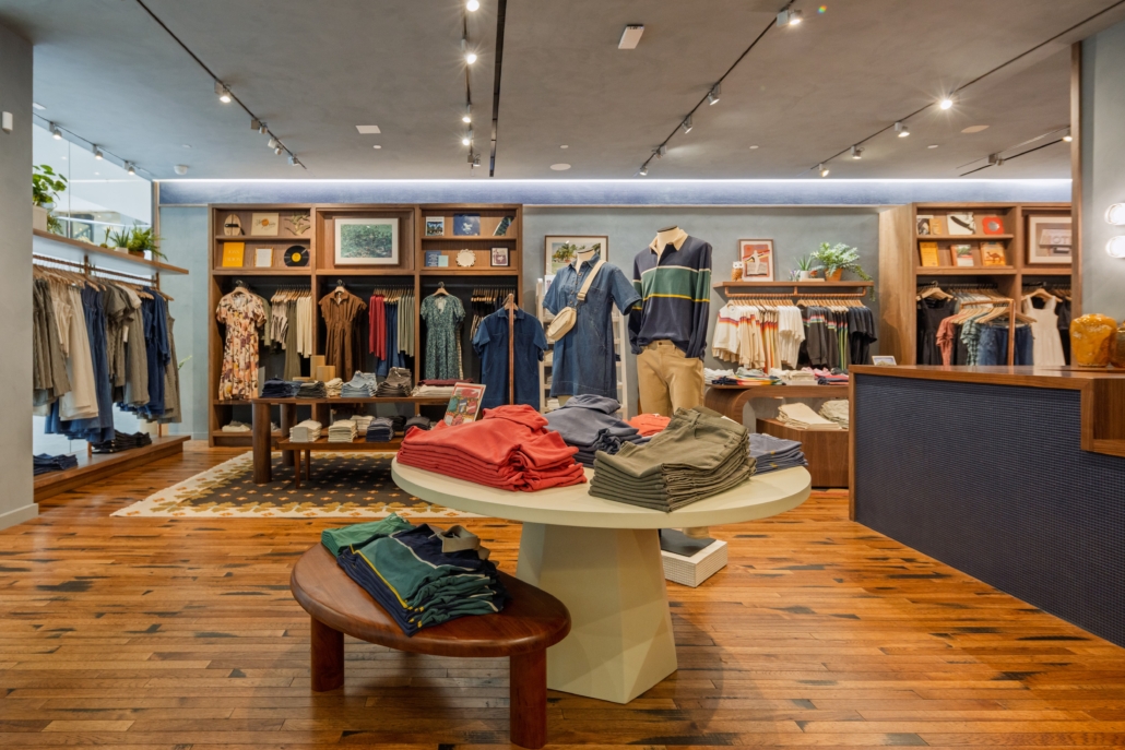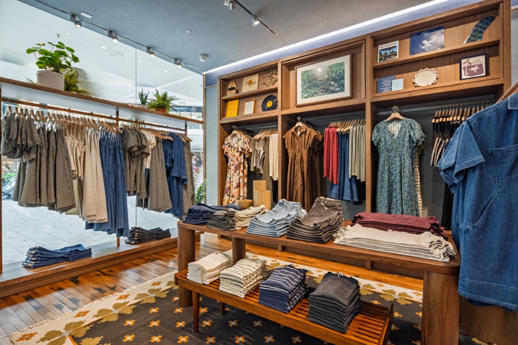 This project required precise coordination of our wood and metal fabrication, with hardwood detailing on the pillar and built-in units with unique copper uprights, this store has been turning heads since install.