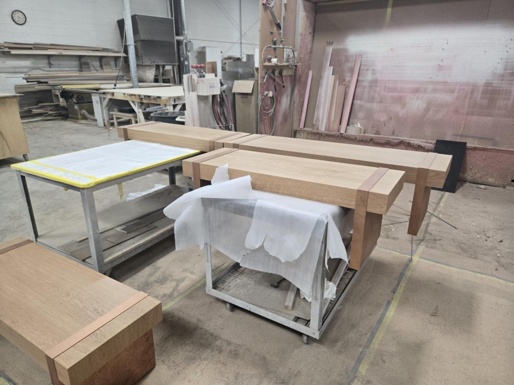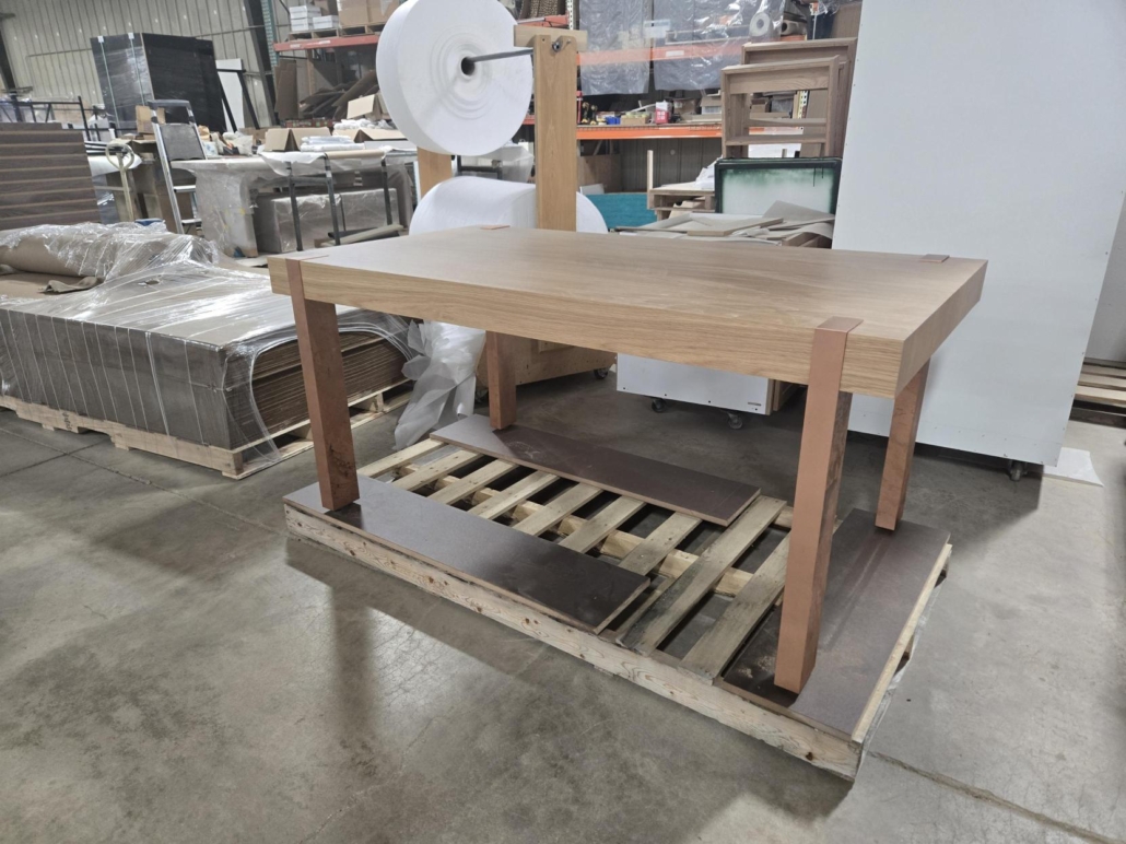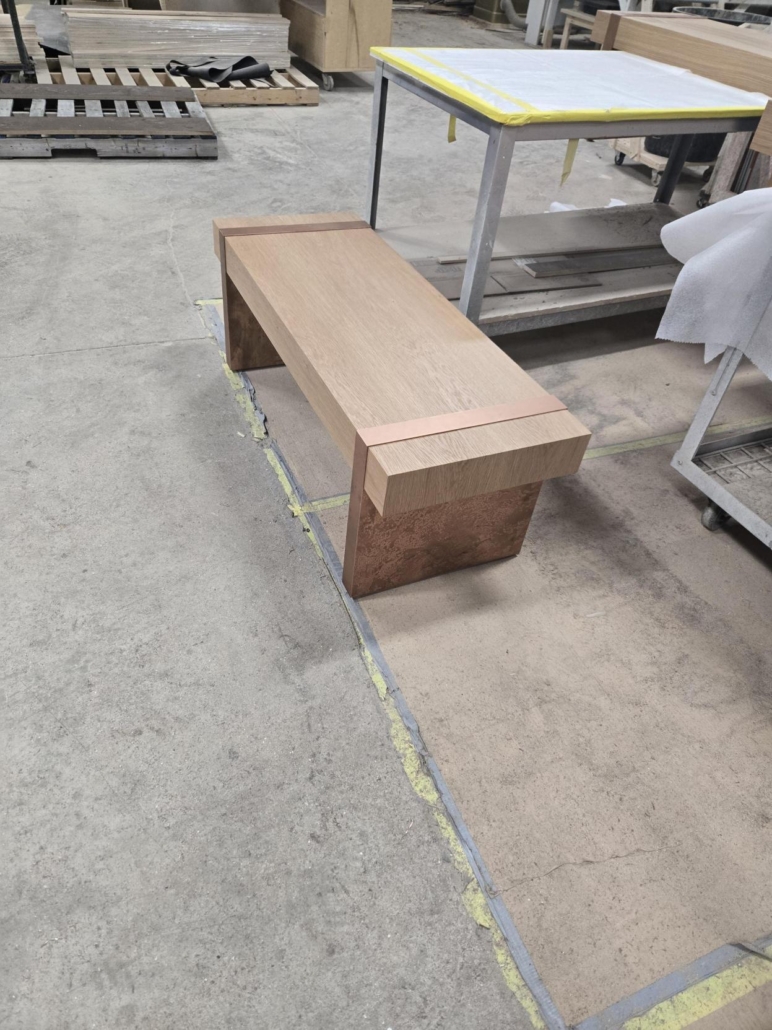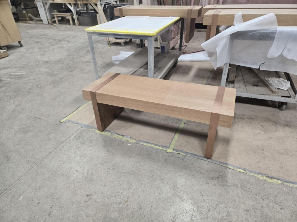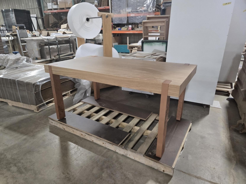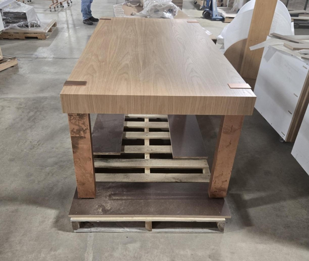 These sturdy white oak tables made by ICG boast a striking feature – copper legs. These legs bring a hand-brushed patina for a bespoke finish