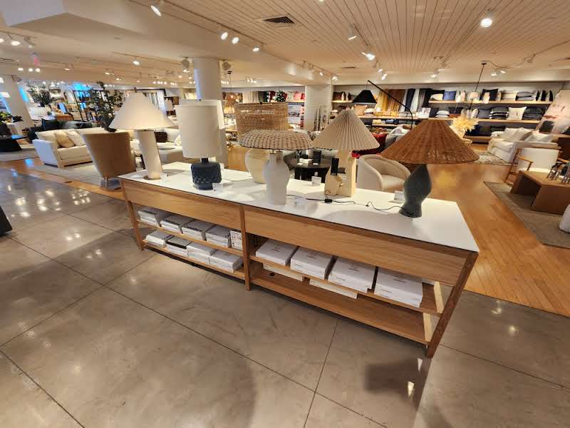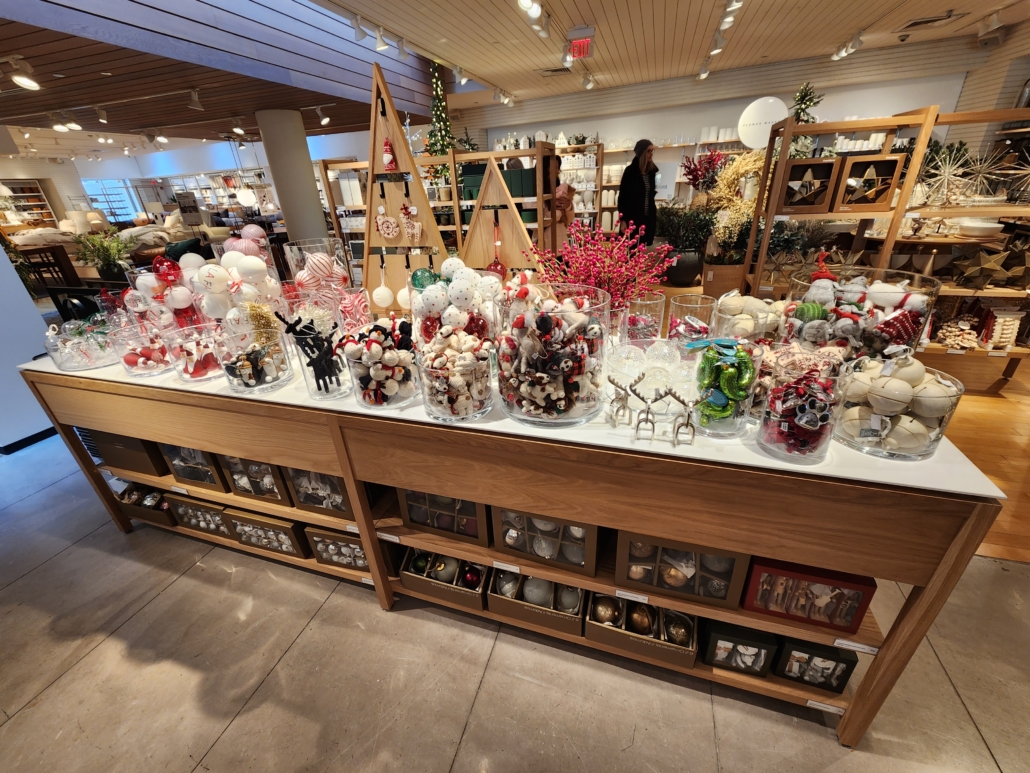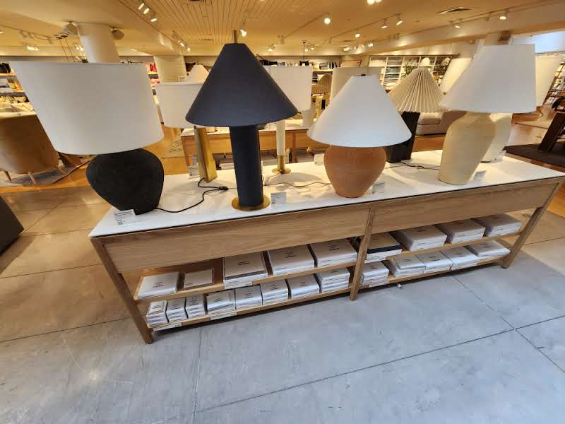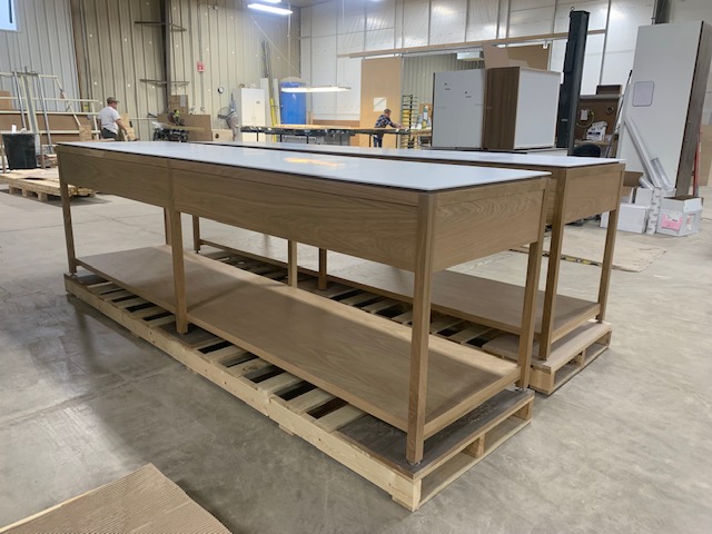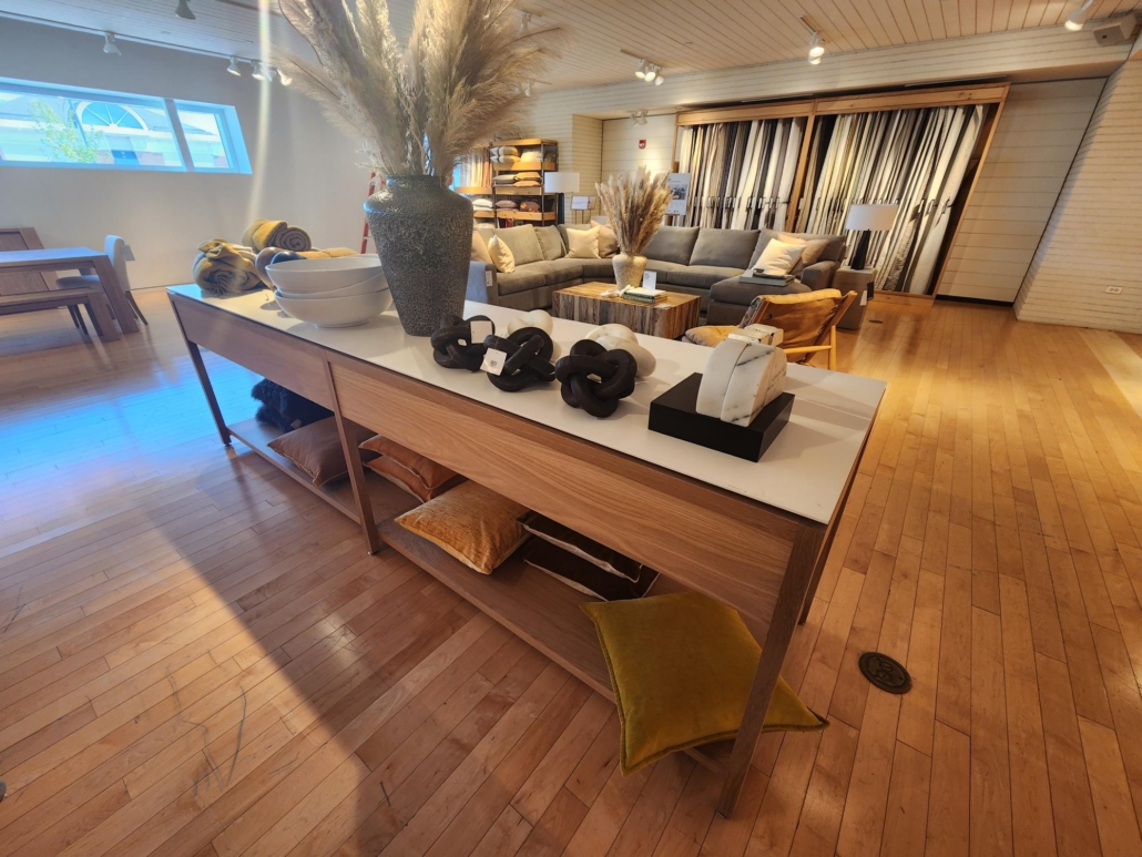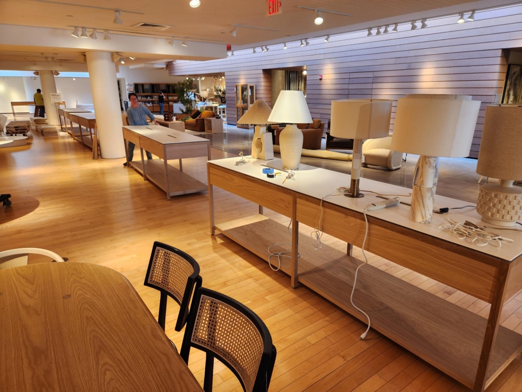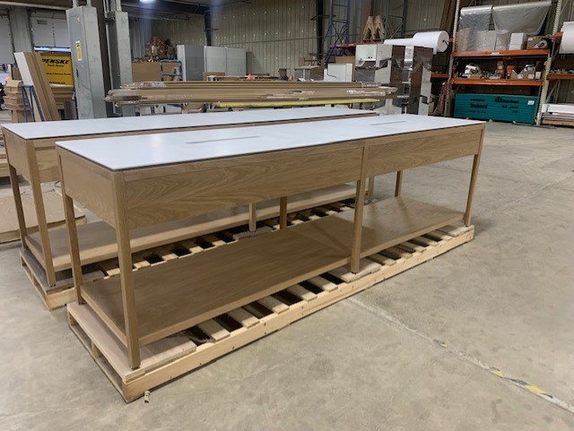 ICG’s skilled craftsmen brought together these design and lamp tables to be a perfect fit in the midfloor of this retail space!